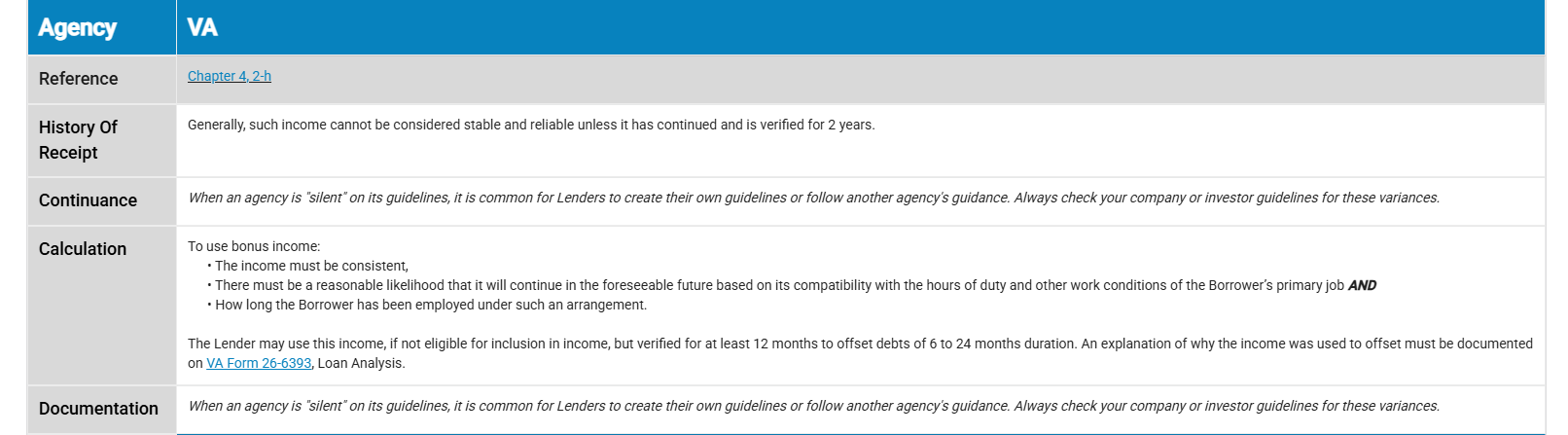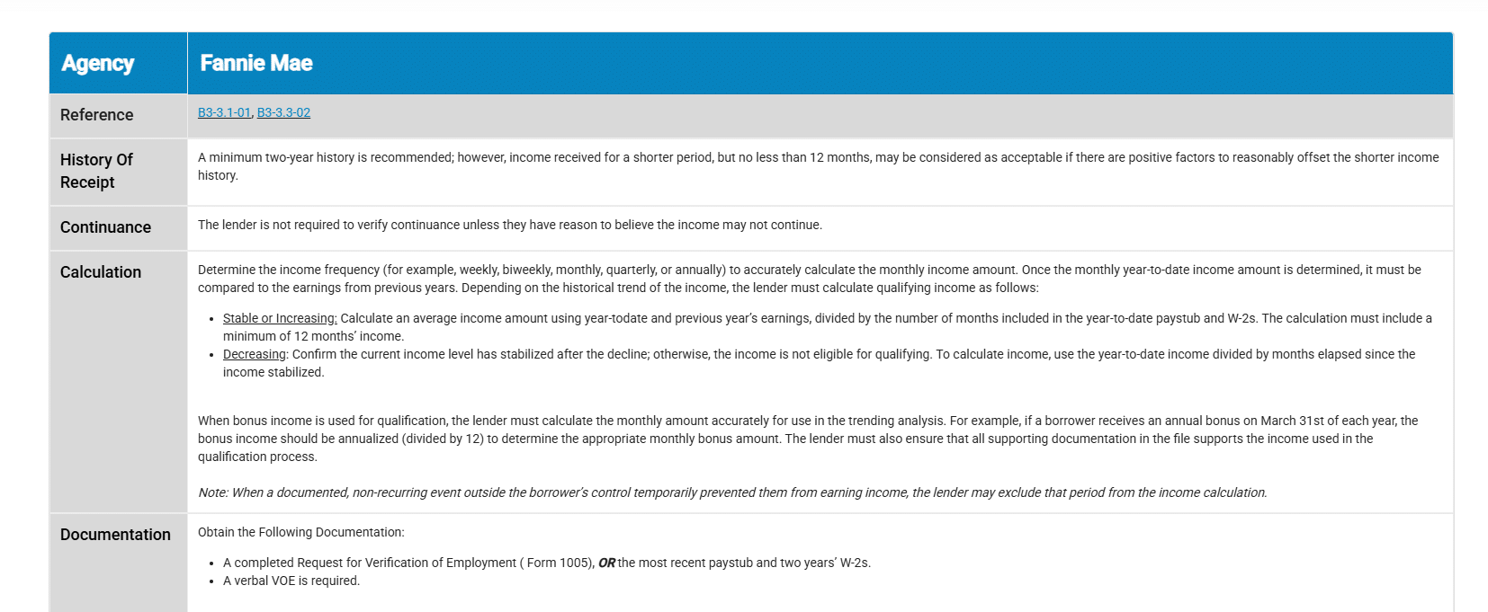Did you know there are over 50 different types of income!? Our Mortgage Income Analyzers simplify calculating your client’s income by comparing the Agency Guidelines and Investor Overlays for every kind of income. We also host and create calculators to help you with the math! –> See Examples